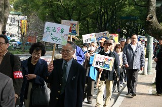 3・13重税反対全国統一行動実行委員会は、08年3月13日、福岡市東区・香椎神宮グラウンド集会をおこない、東福岡、粕屋、宗像・古賀の3民商と福建労、年金者組合などから約500人が集まり、香椎税務署までデモ行進しました。